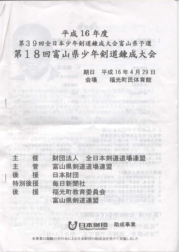 平成16年度 第39回全日本少年剣道練成大会富山県予選