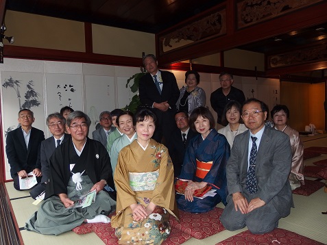 曳山順行を終えて記念撮影・・・外で鑑賞の同級生の長谷川君、荒井君も入って