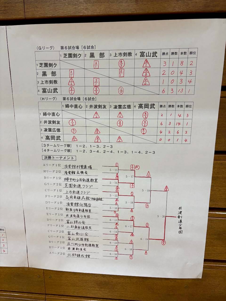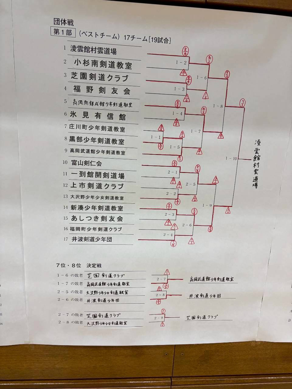 団体 ベストチームの部 井波 準々決勝進出 順位決定戦で勝ち 6位