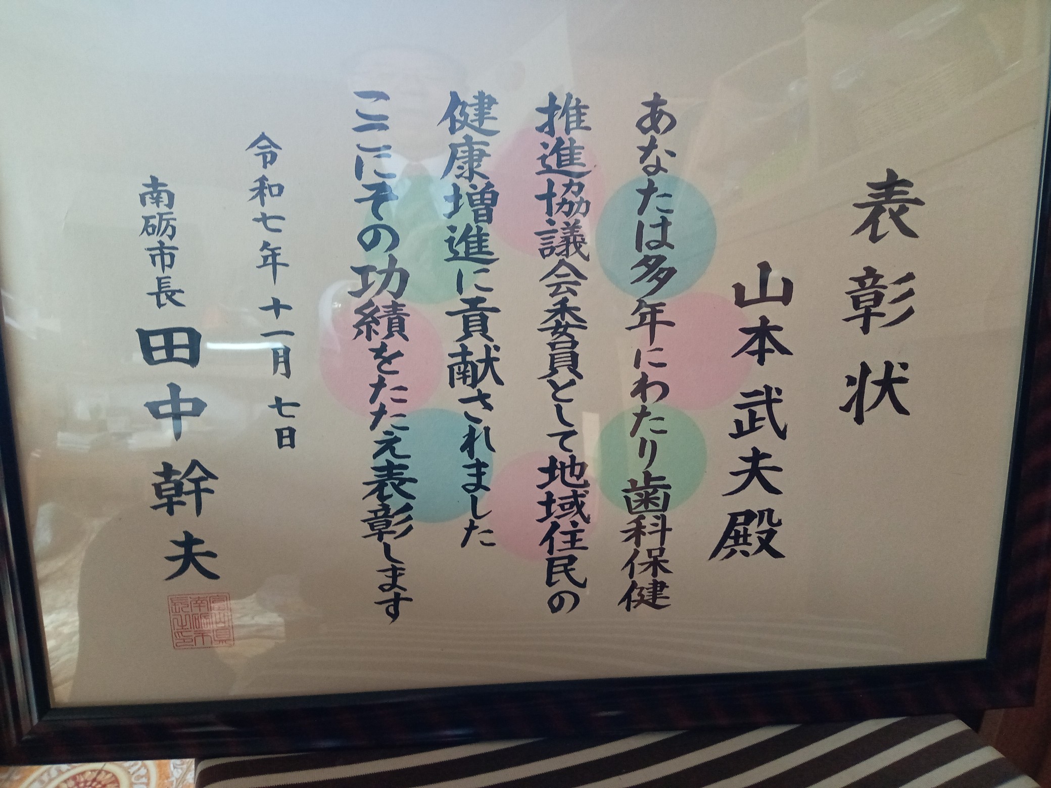 令和7年度、南砺市厚生功労(保健衛生)で表彰を受賞