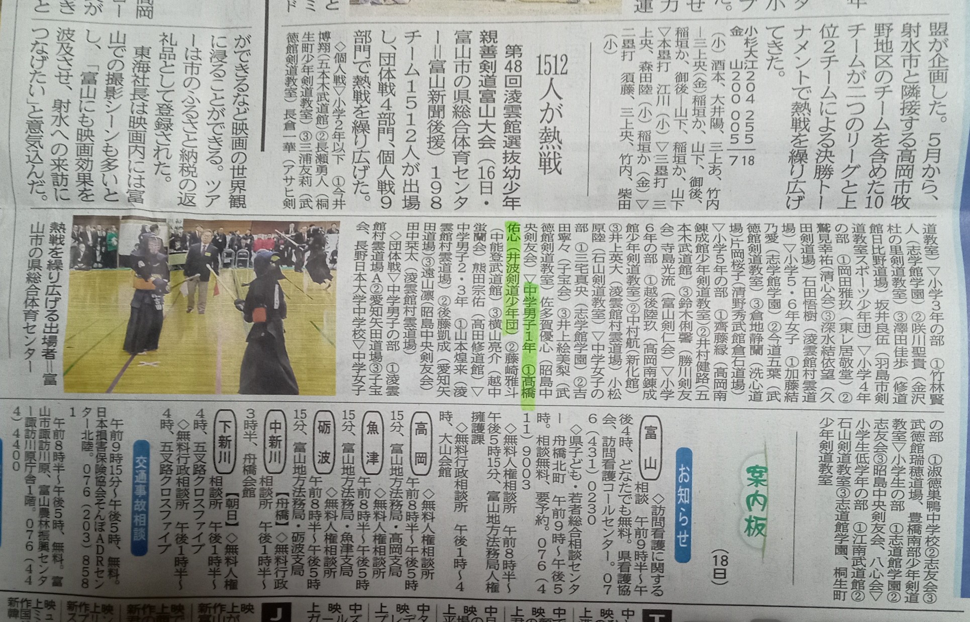 *井波剣道スポ少ンの成績・・・大会詳細は、富山県剣道連盟HPの大会結果をご参照ください
