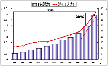 図. わが国の集団フッ化物洗口の実施人数と施設数の推移