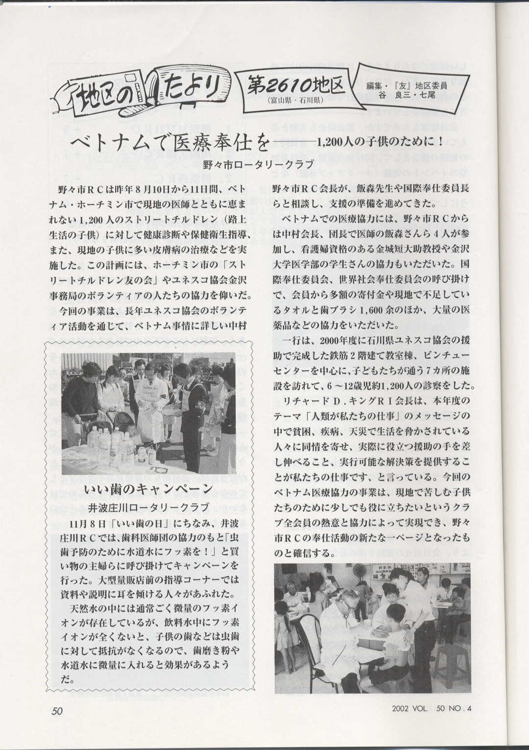 p.50 に『いい歯のキャンペーン 井波庄川ロータリークラブ』掲載