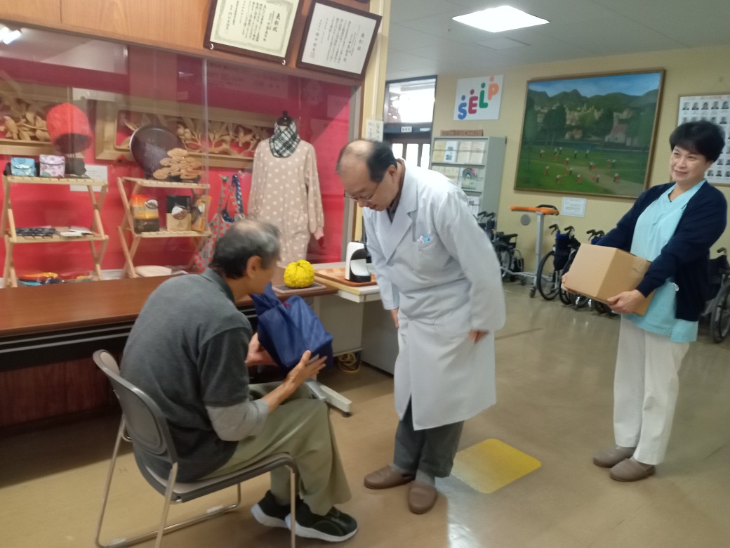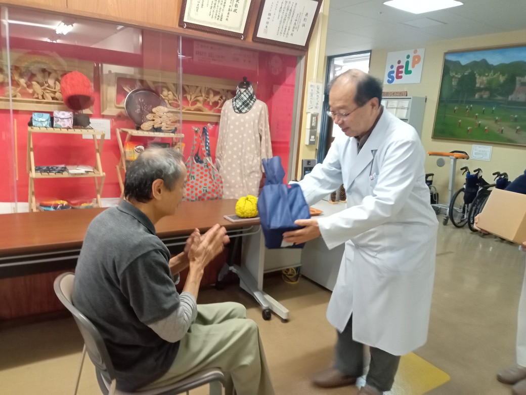 令和6(2024)年11月7日 今年のいい歯の日キャンペーンは、マーシ園さんには、恒例のフッ化物洗口剤の贈呈を行いました。 そのあとの寺子こどもえんさんには、歯ブラシとフッ化物配合歯磨剤サンプルを贈呈しました。